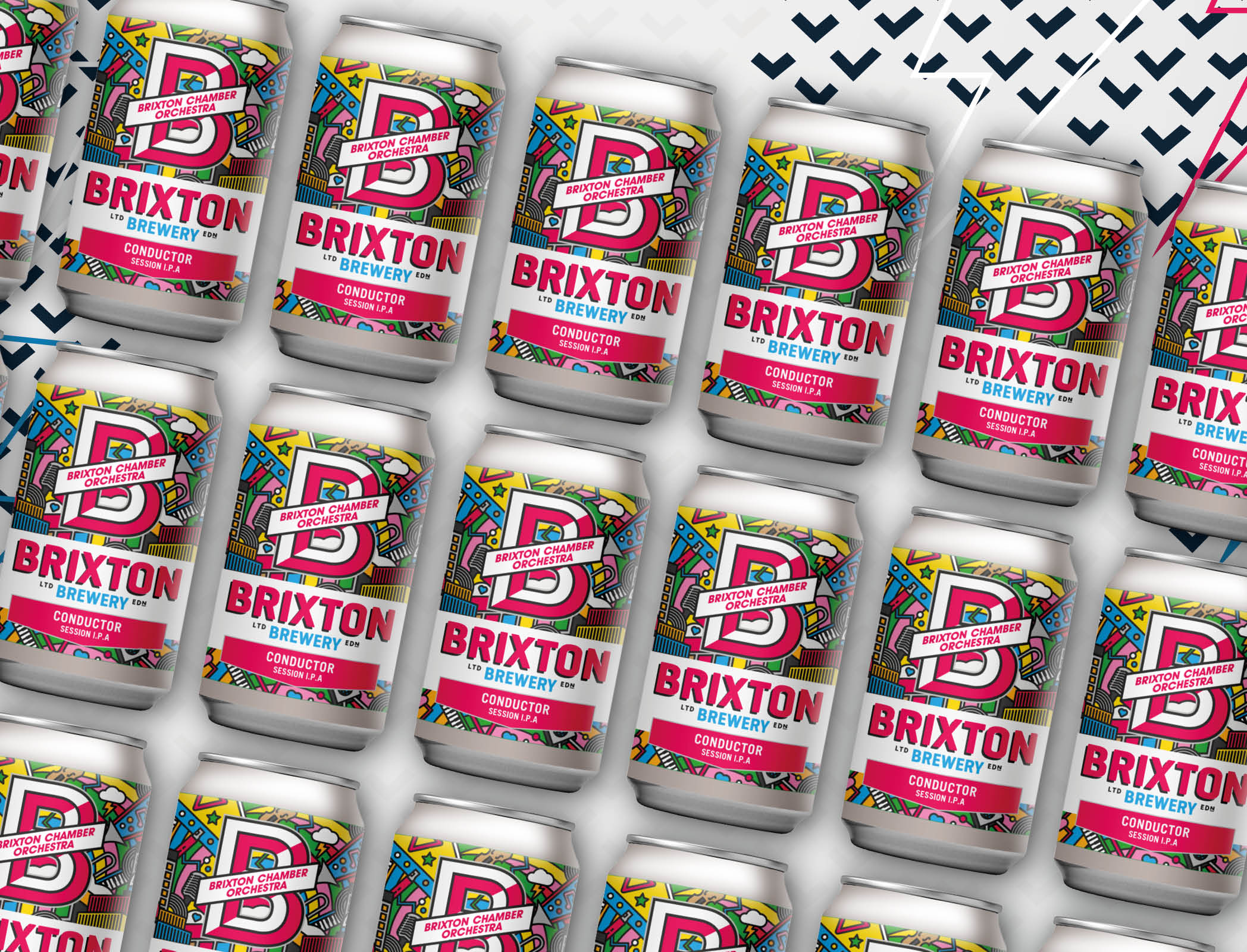 In early 2022 some of my work was spotted on Instagram when entering a competition for Brixton Brewery. Silas at Brixton Chamber Orchestra had nothing but good things to say about my entry and therefore approached me asking to help with a collaboration beer can design. Working with Brixton Brewery designed a bright, eye catching new can design for one of their limited edition brews to be released in the summer and sold at various festivals around London.
